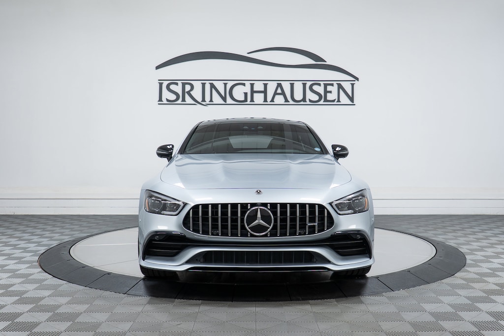 This beautiful 2021 Mercedes-Benz AMG GT 43 in Cirrus Silver Metallic with Magma Grey/Black Nappa Leather Interior will be offered as a Mercedes-Benz Certified Pre-Owned Vehicle with extended manufacturer warranty. It comes loaded with features including Driver Assistance Package, Night Package, Multicontour AMG Performance Seats, Panorama Roof, Heated & Ventilated Front Seats, Head-Up Display, Carbon Fiber Trim, 21" AMG Cross-Spoke Wheels and much more to compliment the 362 horsepower AMG enhanced engine and one of a kind head-turning design. Contact a Mercedes-Benz sales specialist today to take advantage of special Certified Mercedes-Benz programs by calling 800-332-6142. Isringhausen Imports is Central Illinois' premier new car, pre-owned and certified pre-owned (CPO) dealership for quality Mercedes-Benz vehicles. At Isringhausen Imports, we have become a leader in the industry by working each day towards the greater good of our customers, our fellow employees, and our community.