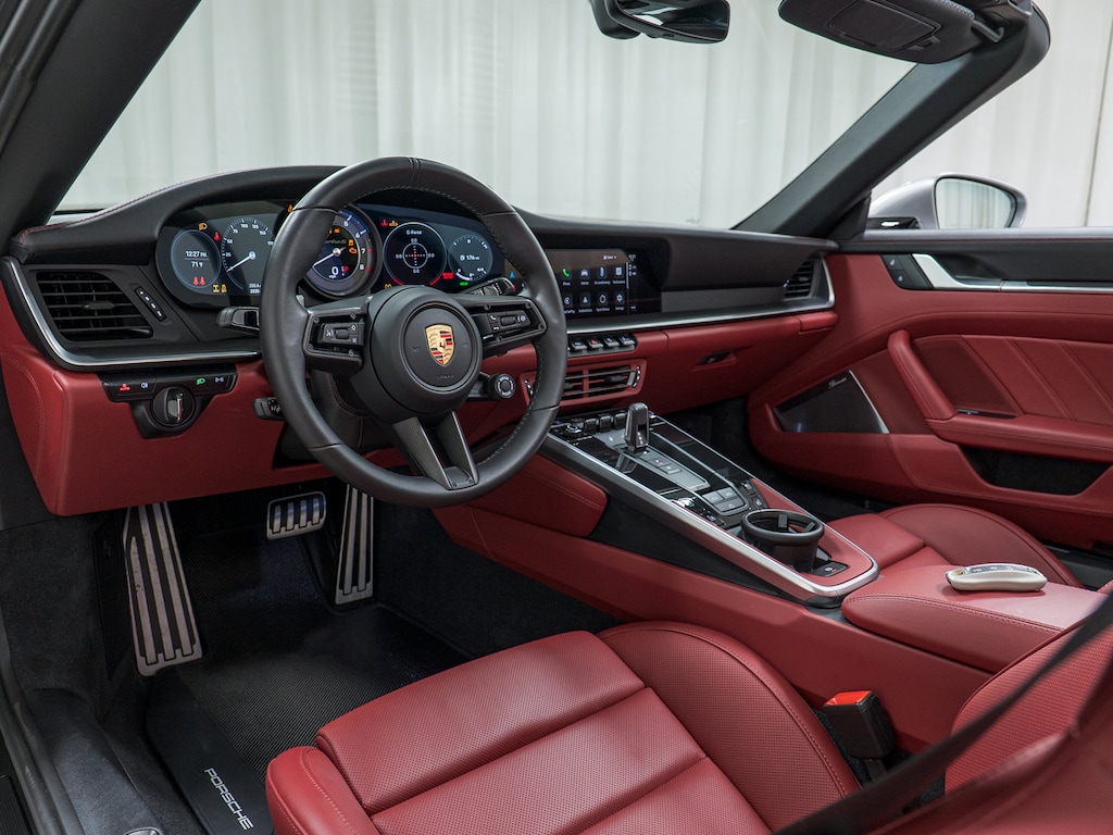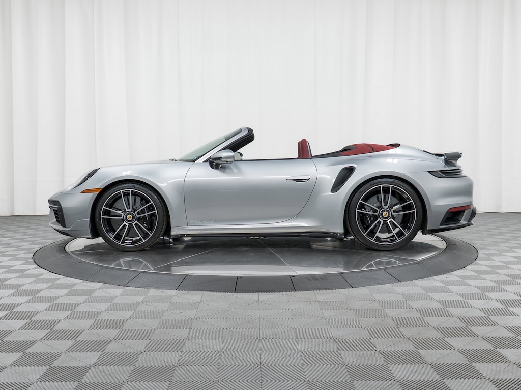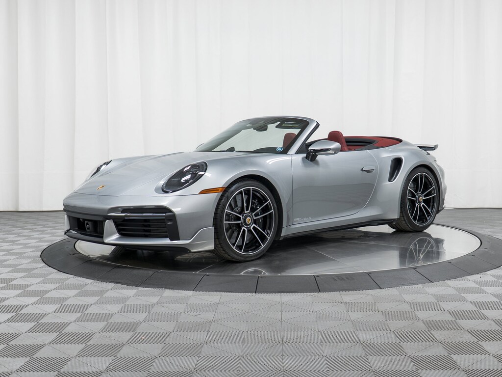 This absolutely stunning 2024 Porsche 911 Turbo S Cabriolet in classic GT Silver Metallic with Bordeaux Red Leather Interior with Red Roof arrives as a 1-owner vehicle with just 3,365 miles and will now be offered as a Porsche Certified Pre-Owned Vehicle with extended manufacturer warranty. A long of very unique factory options include Turbo SportDesign Package in High Gloss Black, Sport Exhaust System, Front Axle Lift, PASM Sport Suspension, Extended Leather Package, Burmester Surround Sound, LED Matrix Design Headlights in Black, InnoDrive wit Adaptive Cruise Control, PCCB with Calipers in High Gloss Black, Porsche Design Subsecond Clock and much more.